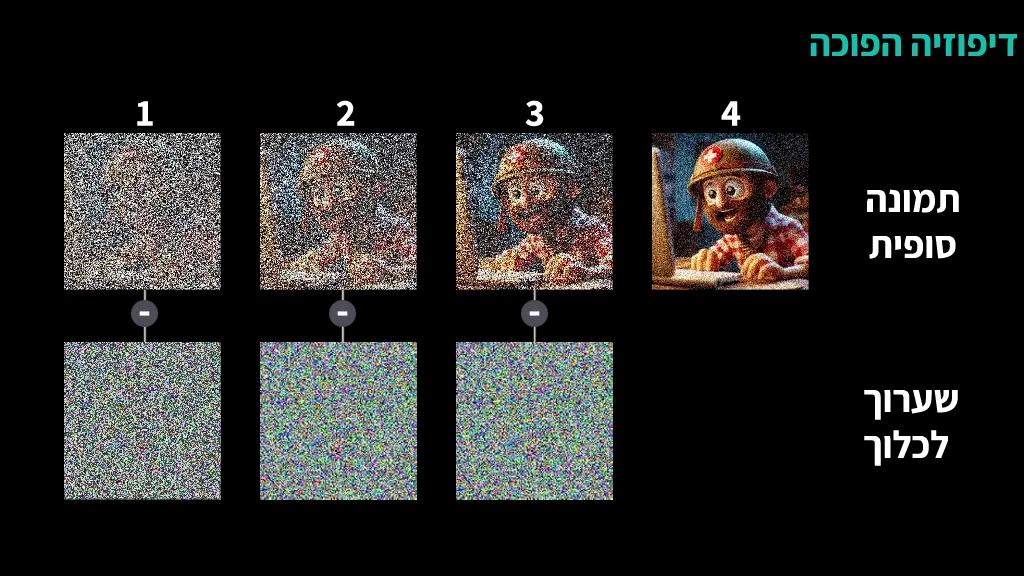 הטכנולוגיה שמאחורי סטייבל דיפיושיין נקראת DDPM (Denoising Diffusion Probabilistic Model). DDPM מתחיל מתמונה "רועשת" ומנקה אותה בהדרגה תוך שימוש ברשת נוירונים עמוקה.