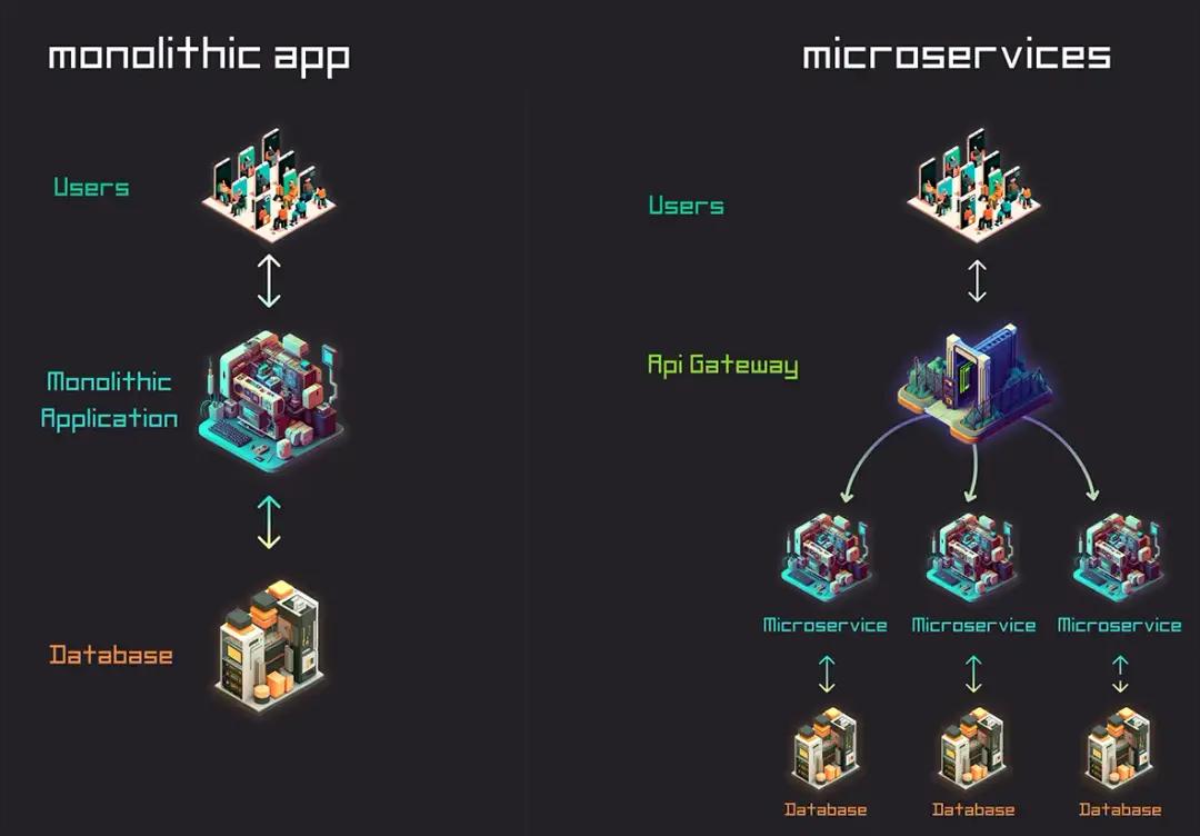 אז מיקרו שירותים זה בדיוק זה, לוקחים את האפליקציה המונוליטית (אפליקציה מבוססת שכבות) ומפרקים אותה למיני אפליקציות.לאפליקציות האלו יש את היכולת לעבוד בצורה עצמאית לגמרי, כך שבמידה ואפליקציה אחת לא זמינה, שאר האפליקציות ממשיכות לתפקד!